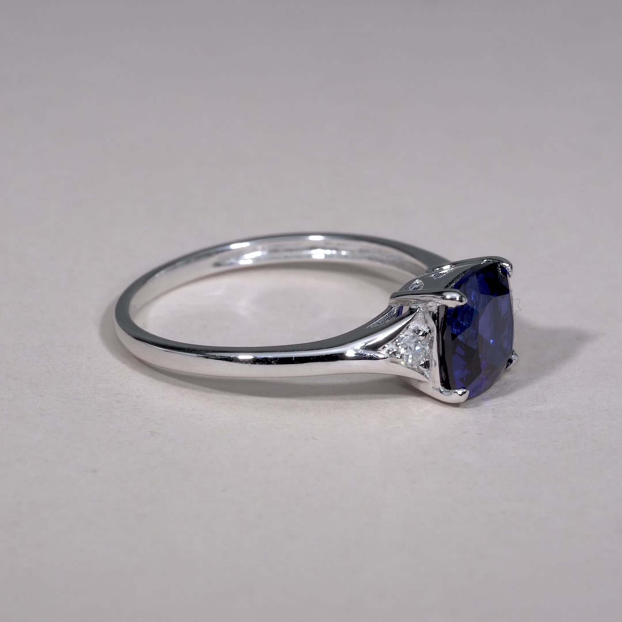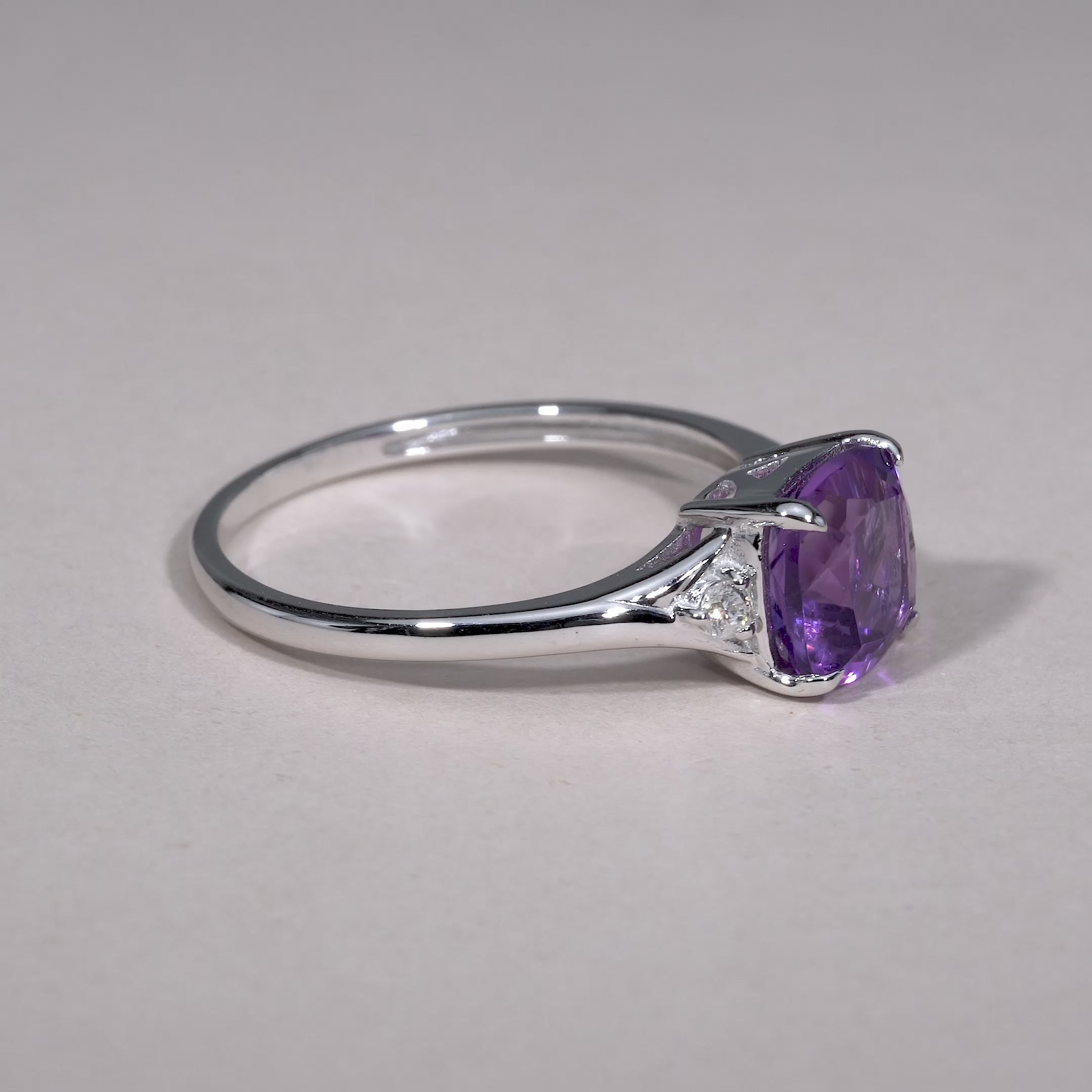 Bague solitaire en pierre précieuse taille coussin et diamant