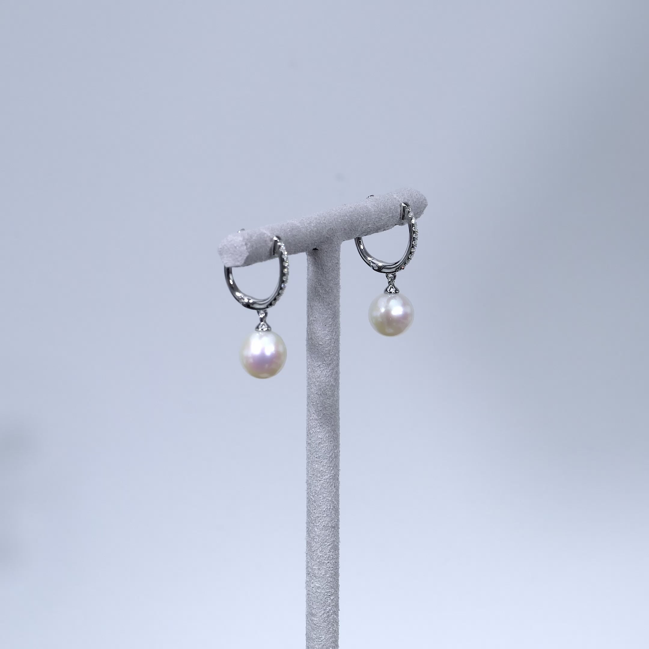 Boucles d'oreilles pendantes en perles de culture et diamants