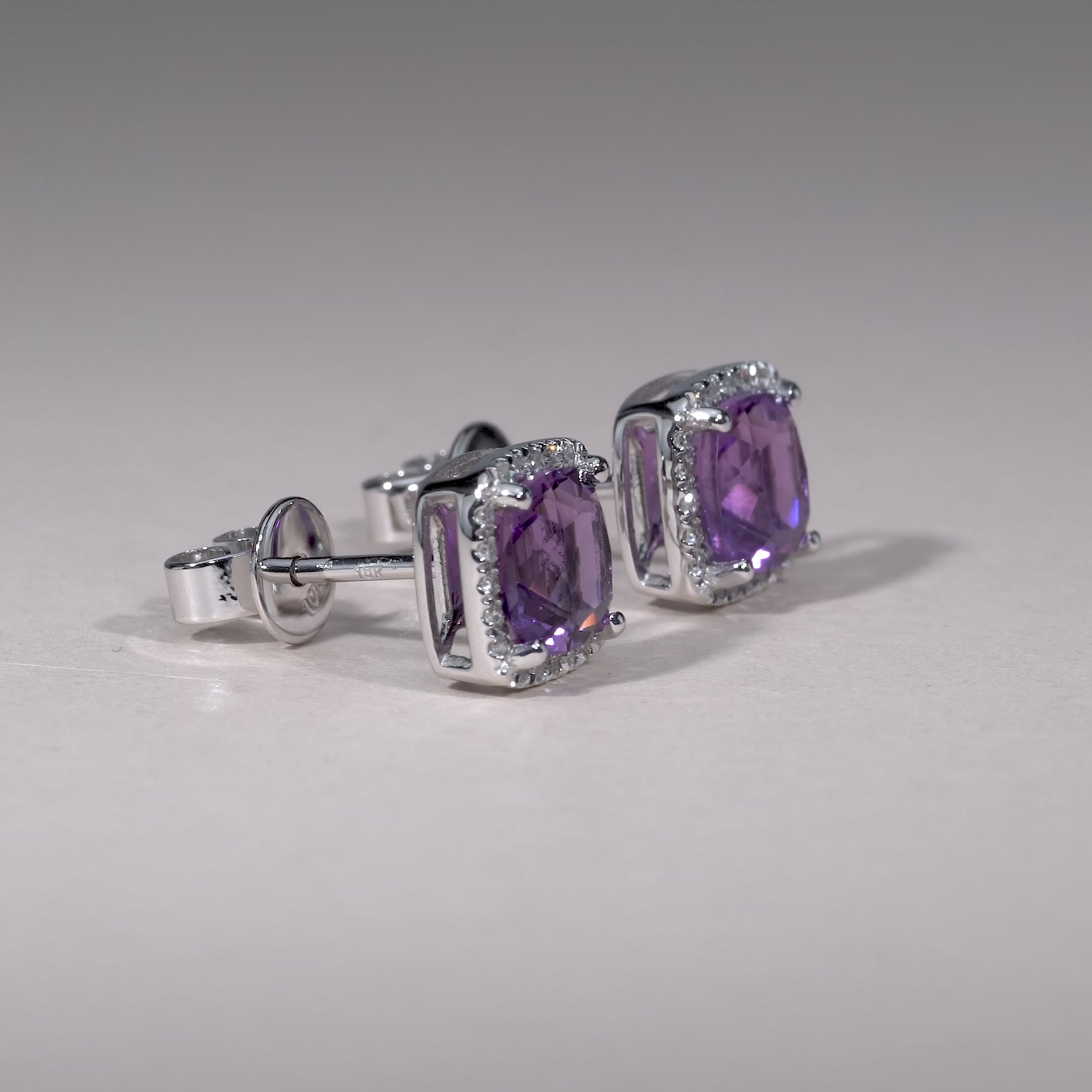 Boucles d'oreilles à tige en pierre colorée et halo de diamants