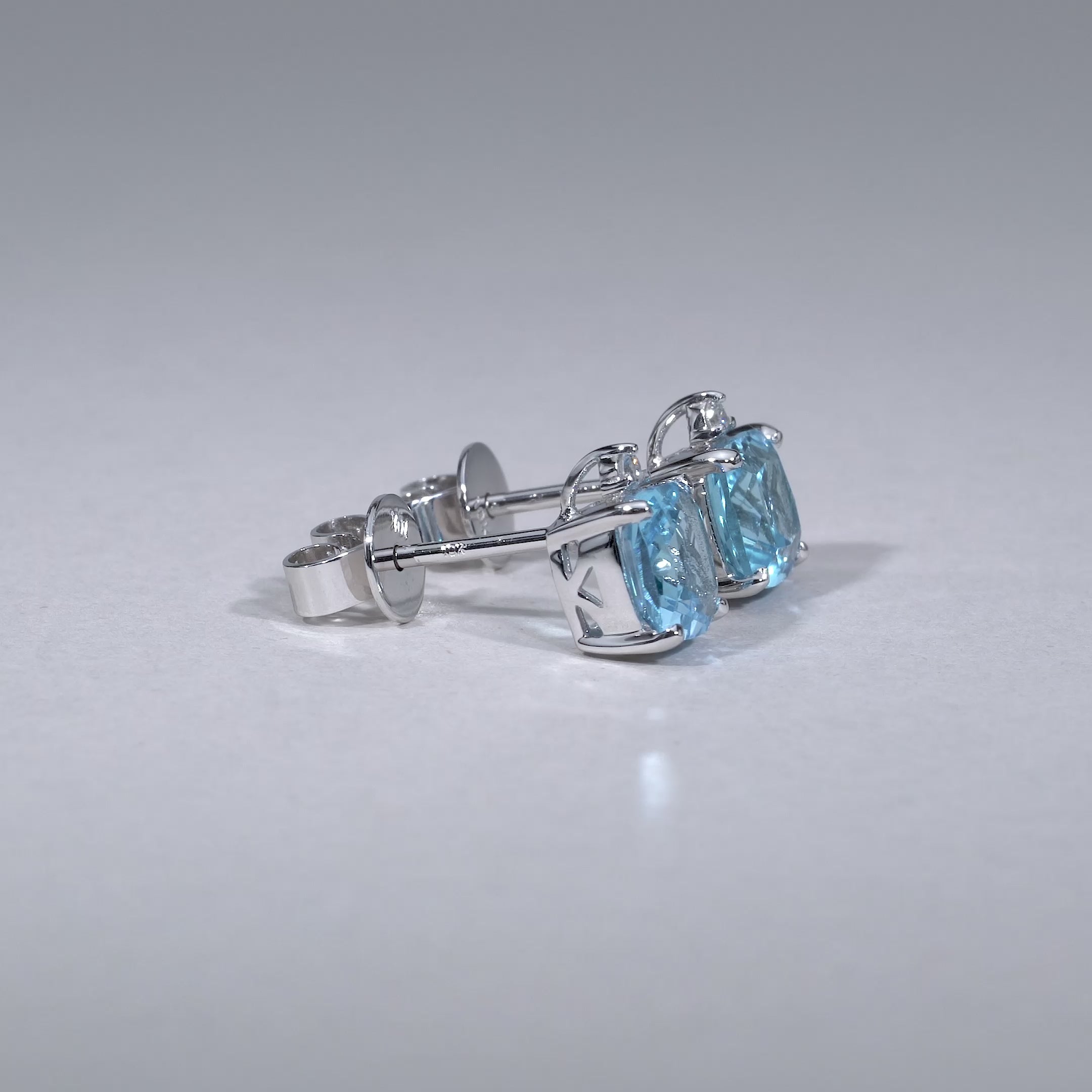 Boucles d'oreilles à tige en pierres colorées et diamants taille coussin