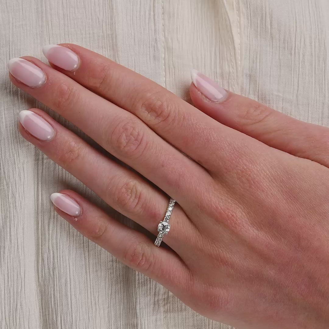 Center Stone: 1D=0.40CTDI, G-H Color, I1 Clarity